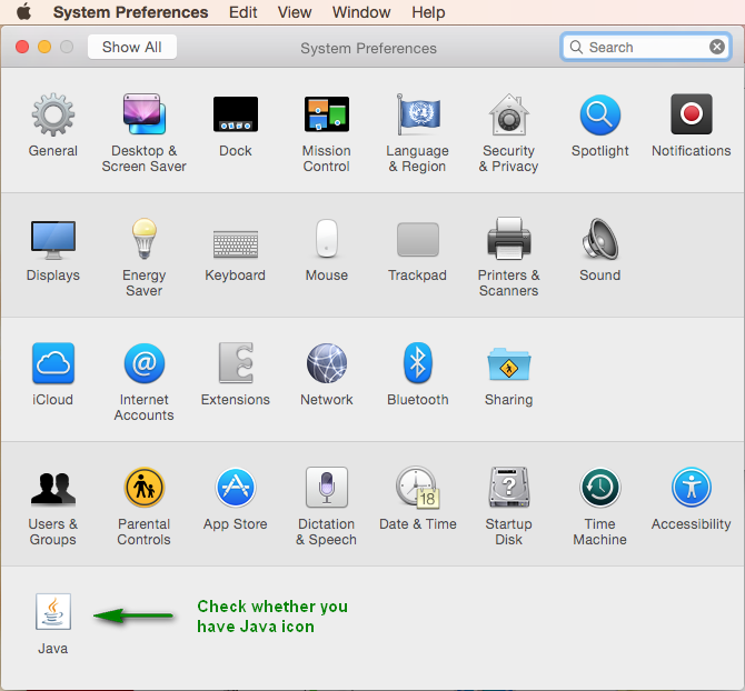 If you do not see the Java icon in System Preferences, please install it with the following instruction.